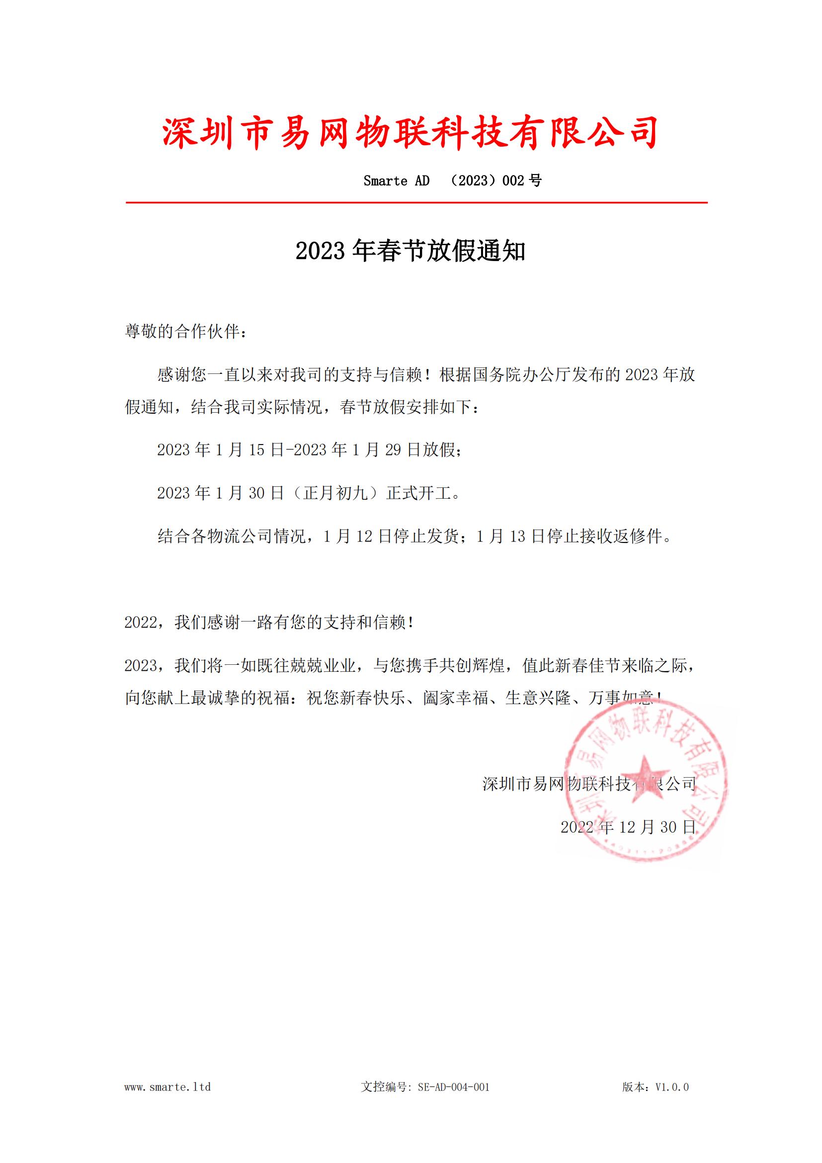 2023年春節(jié)放假通知