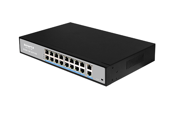 S2300系列POE交換機(jī)是易網(wǎng)物聯(lián)(SmartE)推出的非管理型百兆POE交換機(jī),支持千兆上聯(lián),目前推出2款產(chǎn)品:S2300-24P-2GC、S2300-16P-2GT1GS。POE端口按IEEE802.3af/at標(biāo)準(zhǔn)供電設(shè)計(jì),可通過(guò)網(wǎng)線為無(wú)線AP、網(wǎng)絡(luò)攝像頭、網(wǎng)絡(luò)電話機(jī)、掌上電腦等POE終端設(shè)備供電。安裝簡(jiǎn)單,即插即用,適合安防監(jiān)控、企業(yè)無(wú)線覆蓋等應(yīng)用場(chǎng)景。